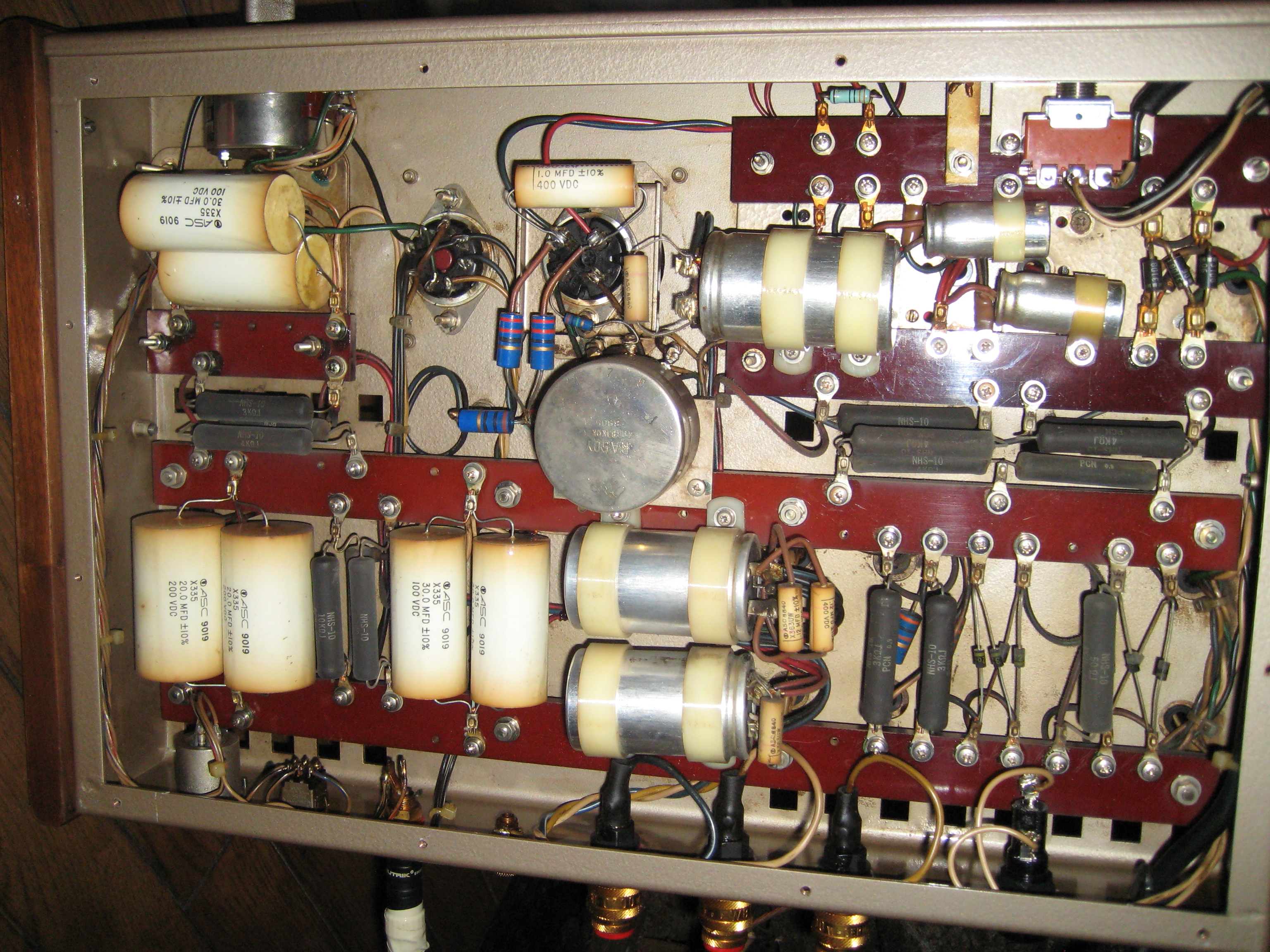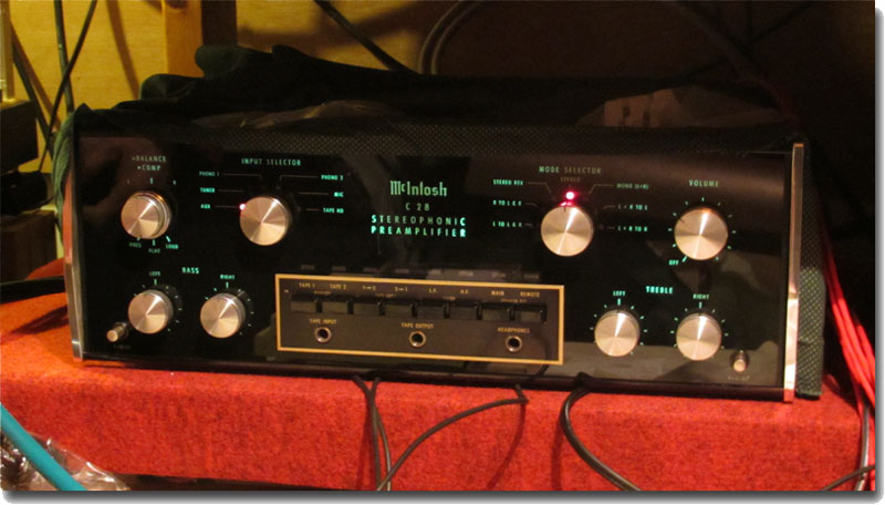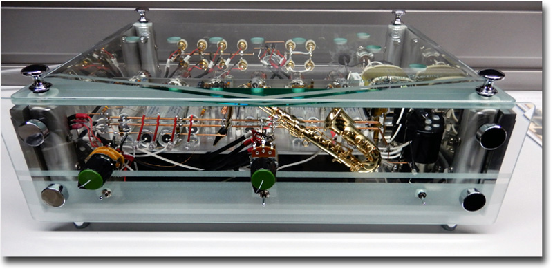 | マランツタイプのイコライザーを採用した音楽舎の最新式プリアンプです。 使用真空管はJJ製。またすべてのコンデンサーはARIZONA CAPACITORS。内部にはサクソフォンのミニチュアが仕込まれていたり、また装飾用のLEDが点滅したり、内部を見ているだけで楽しくなるような、そんなプリアンプです。 音楽舎オーナーの吉田様のご厚意で2月12のレコードコンサート『日本の抒情〜トランペットと歌で奏でる懐かしき想い出』で使用しました。また当日は50年前のビクター製ステレオ(OTLアンプ方式)も楽しんで頂きました。詳しくはココをご覧ください。 |