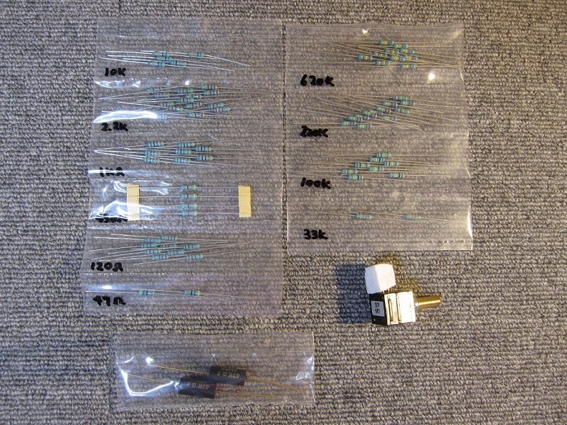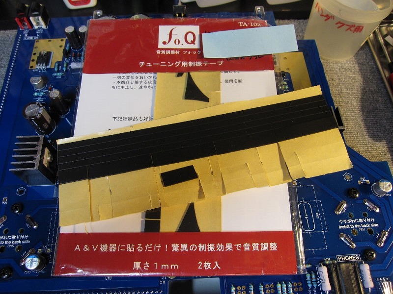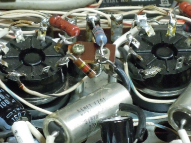 イコライザー素子コイルと段間トランスを置いてみました。非常にコンパクトです。 |