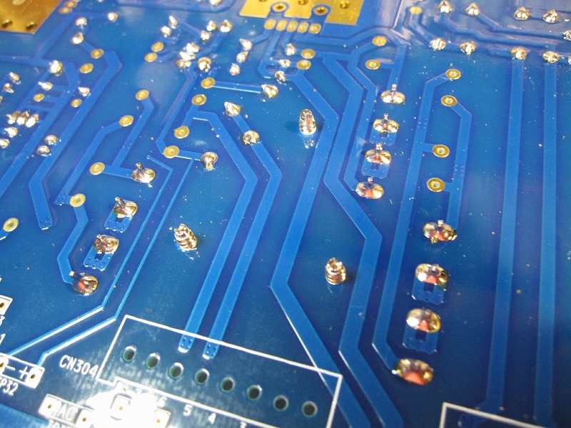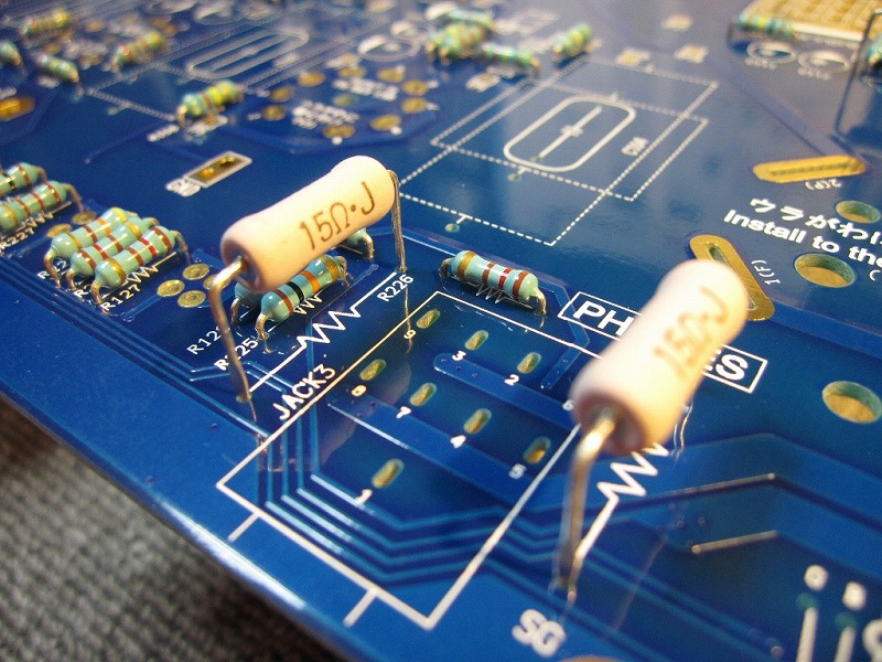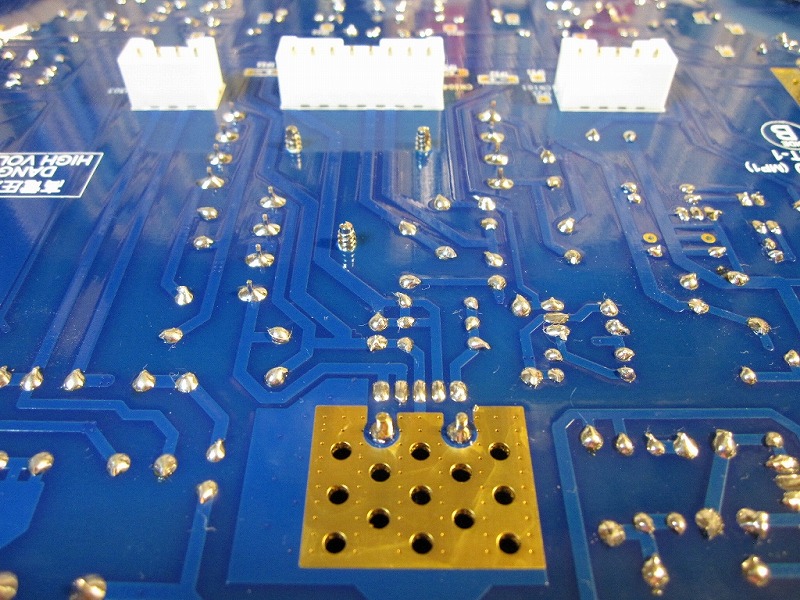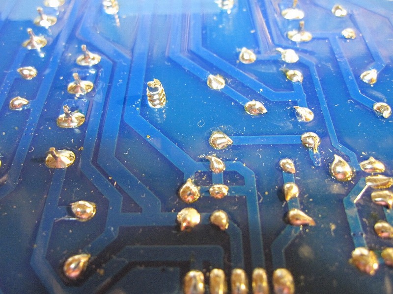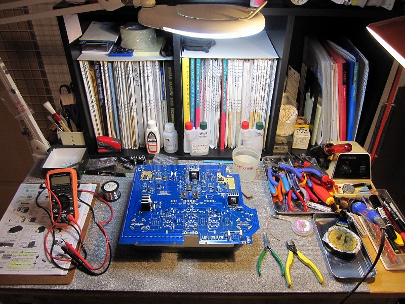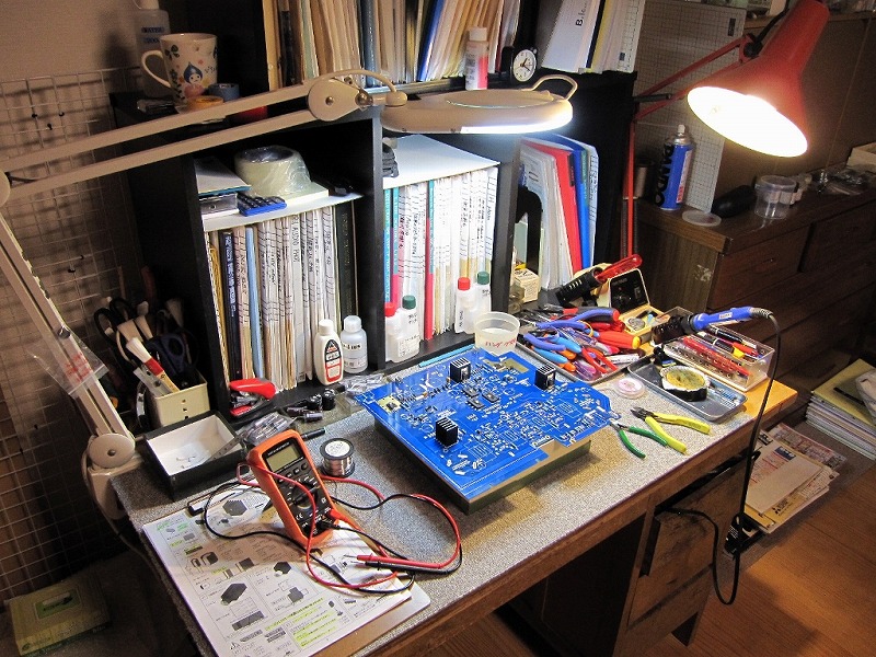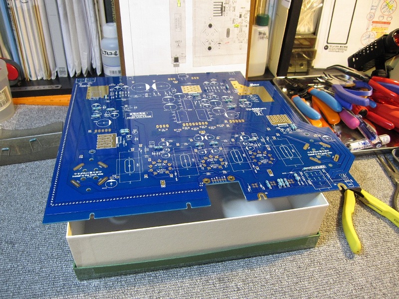 順番に半田付けです。スペースがあるので、はかどります。 |
