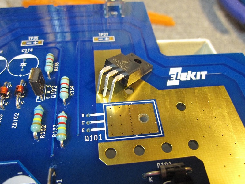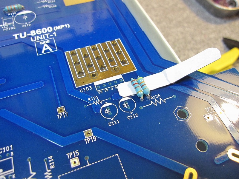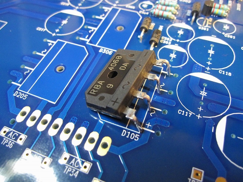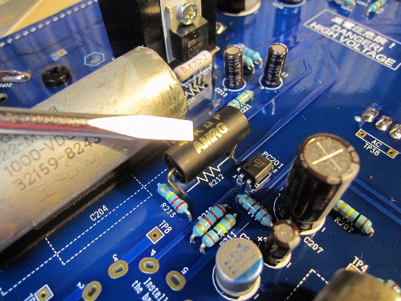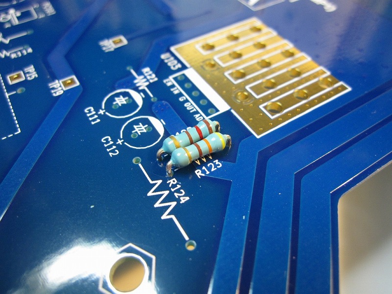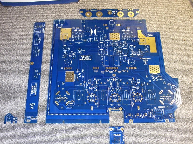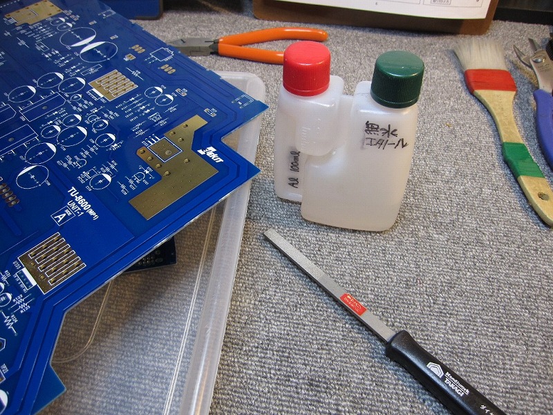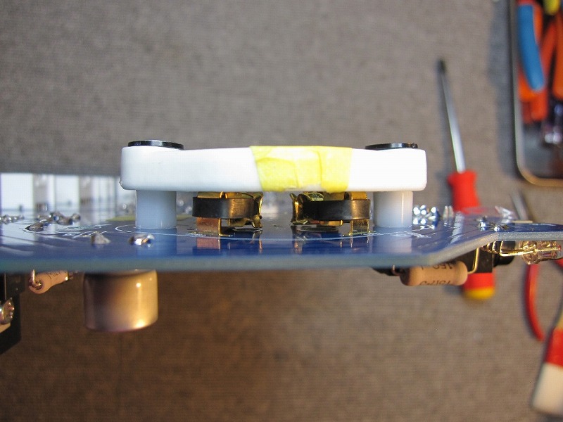 順番に半田付けです。スペースがあるので、はかどります。 |
