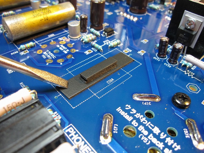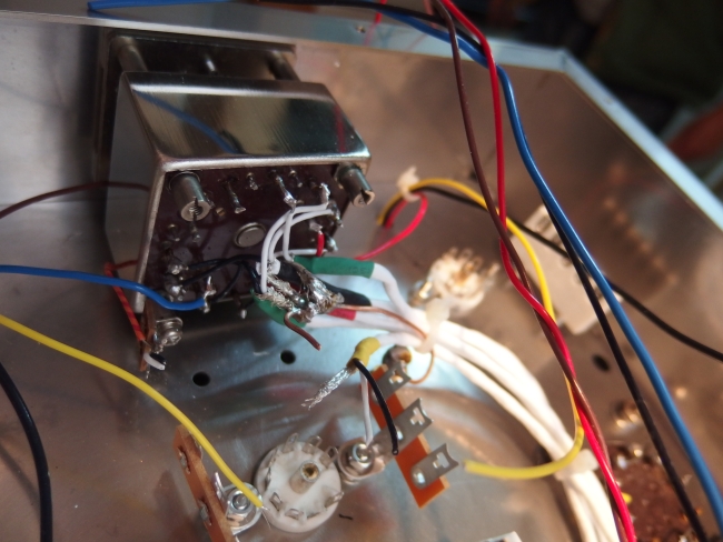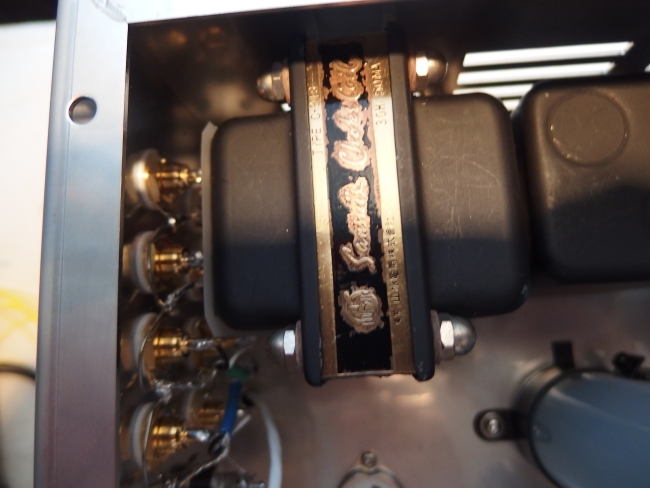 出力トランスWE160Cを取り付けました。トランスの丸とイコライザー素子コイルの四角とのバランスが良いです。 |