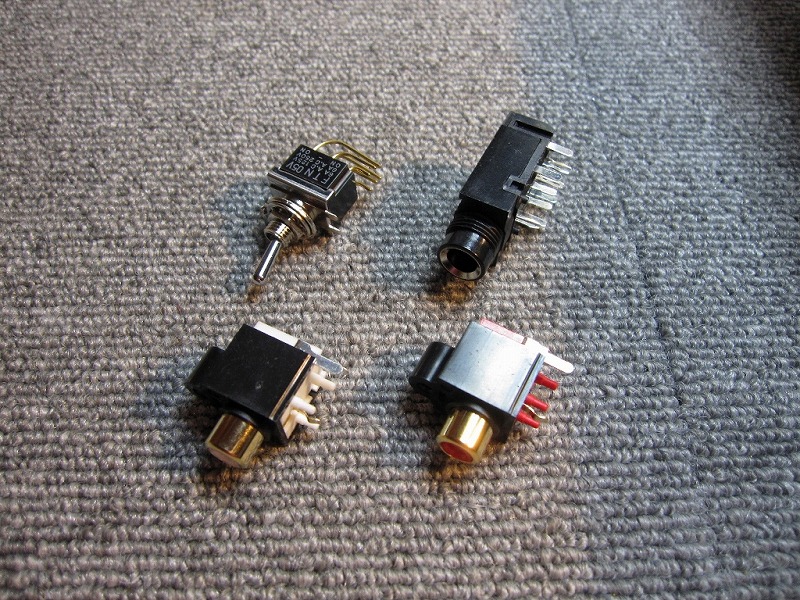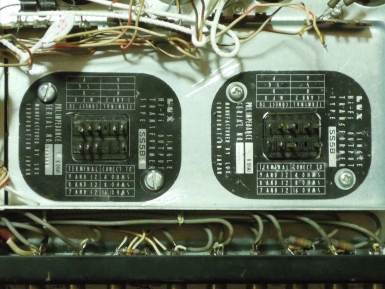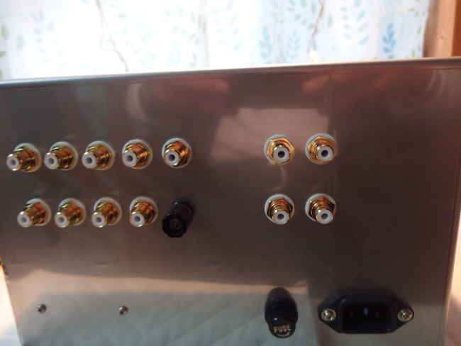 リヤの写真です。左から5番目はモノの入力です。黒いのはアースです。 |