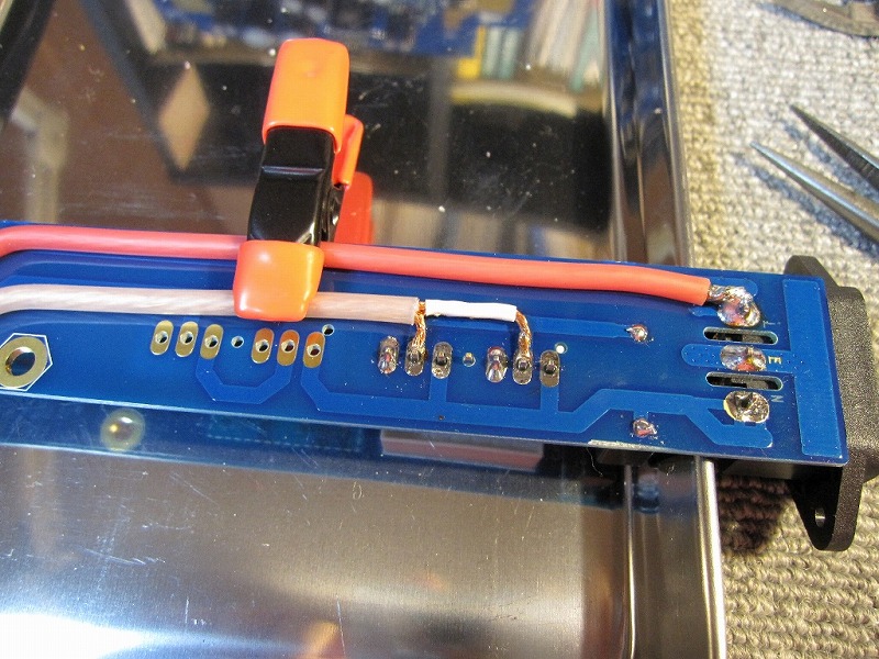 だんだん込み入った部分の配線になり、半田付けする先が老眼で良く見えません。ハズキルーペが欲しいです。 |