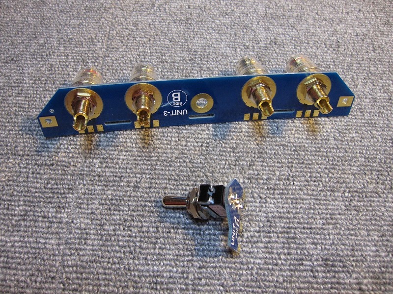 入力切替えの配線です。切替えスイッチは安楽会員提供の東京光音製です。5回線の半田付けは難しく、安楽会員にお願いしました。 |