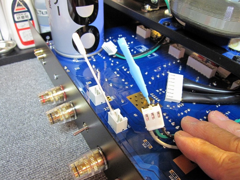 写真左が2月11日現在、写真右が4月25日のアンプ内部の様子です。アッテネーター(写真の一番奥の両端)をDAVEN256Gに交換しました。音がまろやかになったような気がします。 |
