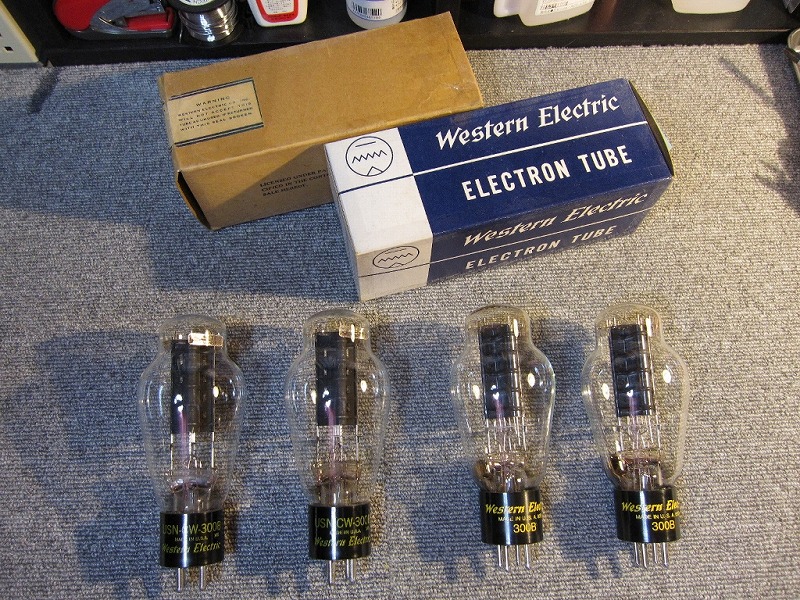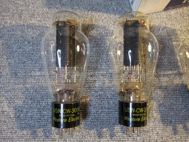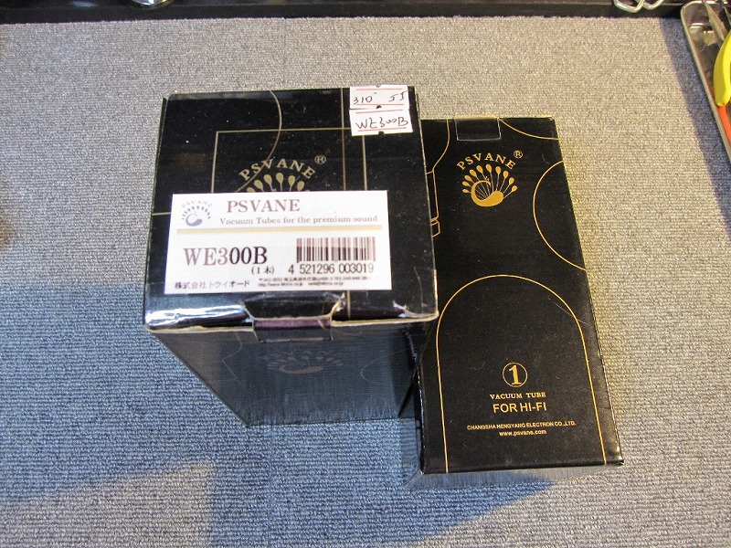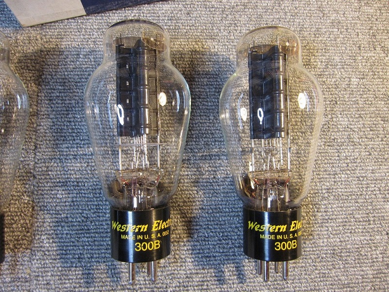 WE300Bにて、電圧増幅管はブライマーやテレフンケンなどを使用。まだまだ真空管や古いカップリングコンデンサのエージング不足で音は硬いですが、基本的によい音ですね。音楽を初めて通すアンプなので、アンプはまだ音楽を理解していません(笑) 300Bの片鱗が聴き取れます、ゆったりとした音の響きが美しいですね。高音域の情報量が多いです。