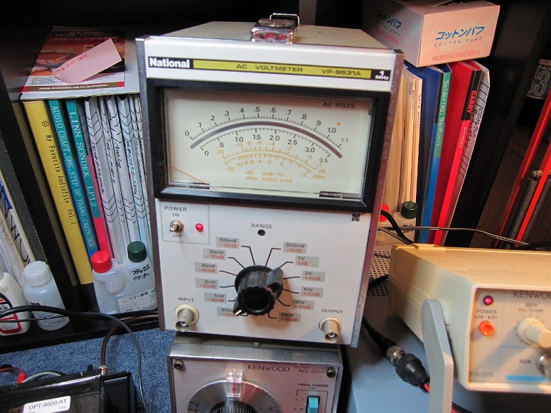 交流電子電圧計(通称ミリバル) テスターでは交流微小電圧はテスターでは測れないので、残留ノイズや各ポイントの電圧を測定します。