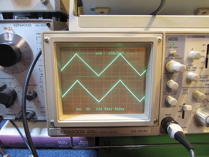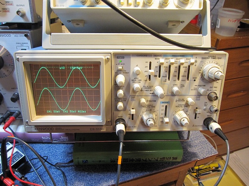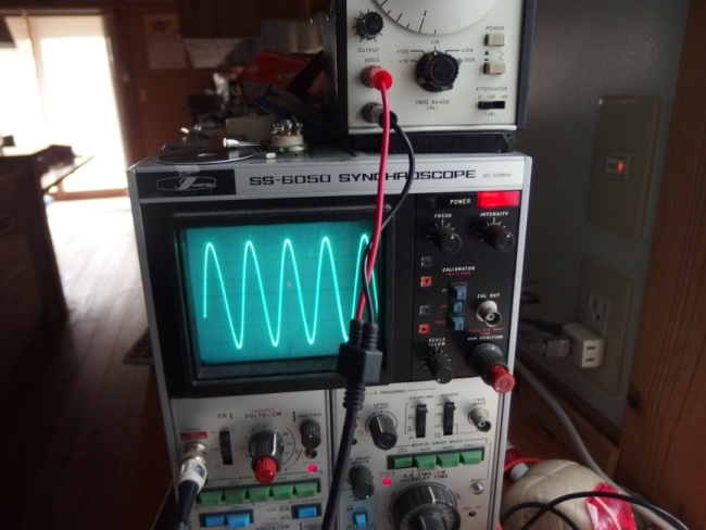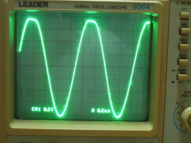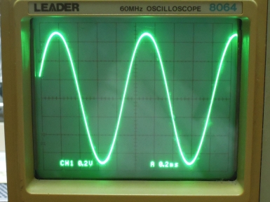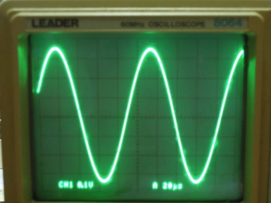 | 入力をファンクションジェネレーターに替えて正弦波、1KHz。 |