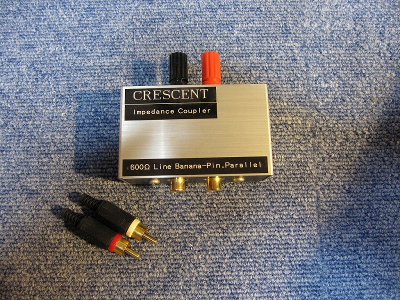 インピーダンスカップラー(自作品) 測定器の出力インピーダンスは600Ωで、アンプの入力インピーダンス は高いためアンプ入力部に接続してミスマッチを防止します。中身は600Ωの抵抗が入ってます。