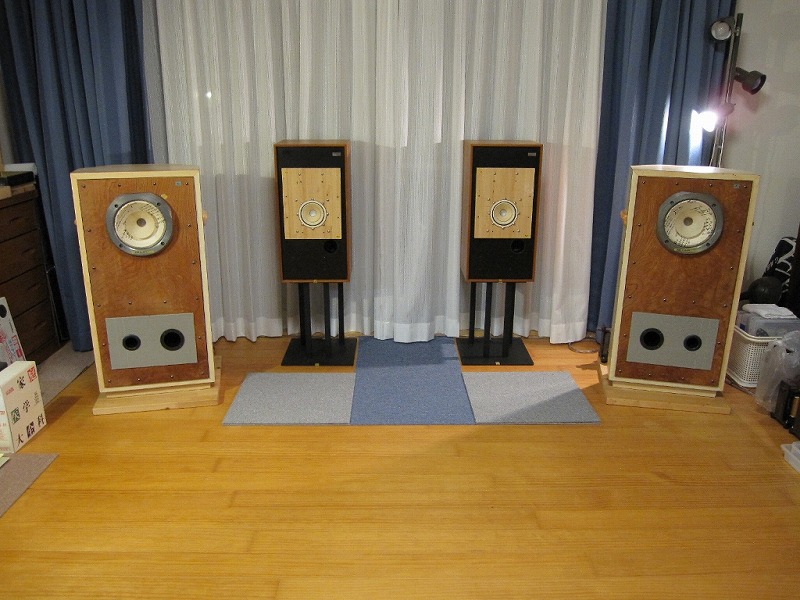 | 使用スピーカーです。 外側は強力磁気回路にコーン紙は江時代の手漉き和紙の20cmフルレンジユニット、コーン紙は勧進帳から製作されたもので文字が書いてあります(耳なし芳一みたいで、ちょっと不気味)箱はGOODMAN AXIOM80用で改造途中です。 中央は旧EXACT社の12cmフルレンジユニットでボイスコイルが2重になっています、英国ハーベス社の箱に取付け。 両方とも超ハイスピードな音調で音が飛び出してきます。そして可憐な音も奏でます(笑) |