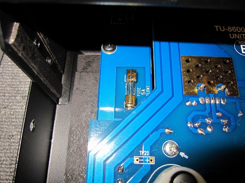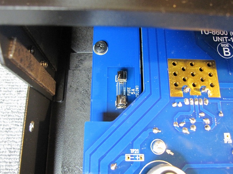 | 本体カバーを外したところ、基板左上にヒューズがあります。 |