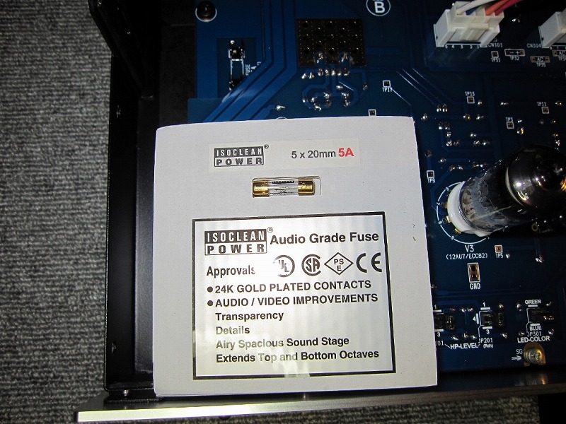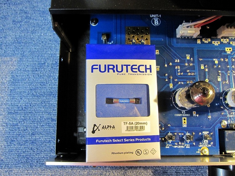 アンプのエージングを兼ねて、2つのヒューズを比較しながら使っていくことにします。「球ころがし」でなくヒューズころがしかな? (球ころがし:メーカーの異なる真空管を差し替えて音の違いを楽しむこと。最近、増えています) また、ヒューズ取替えはあくまで個人責任になりますので、ご注意下さい。