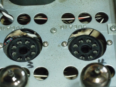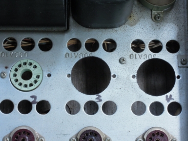 50CA10のソケット穴4つのうち左の2つを6CA7のソケット取付け位置にする。 |