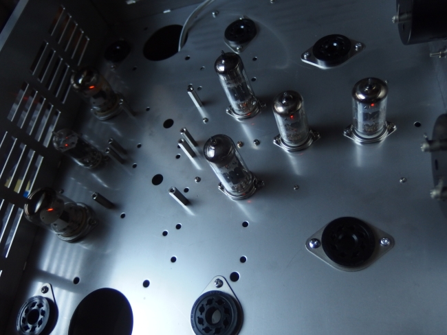 まず姿・形・佇まい(たたずまい)でしょう。フィラメントが薄っすらと点灯しているさまは、存在感があってなごみますね。半導体アンプはもうブラックボックス「箱」ですから、真空管のような魅力は乏しいでしょう。そんなこんなで、いつのまにか真空管の魅力にやられています(笑)