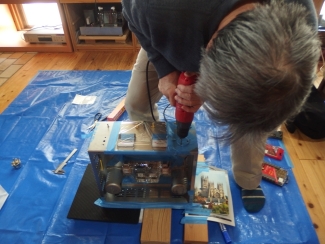 細かい部品の取り付けが始まりました。作業が込み入って、なかなかはかどりません。 |
