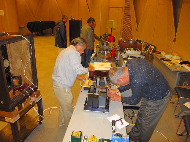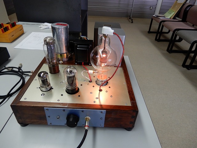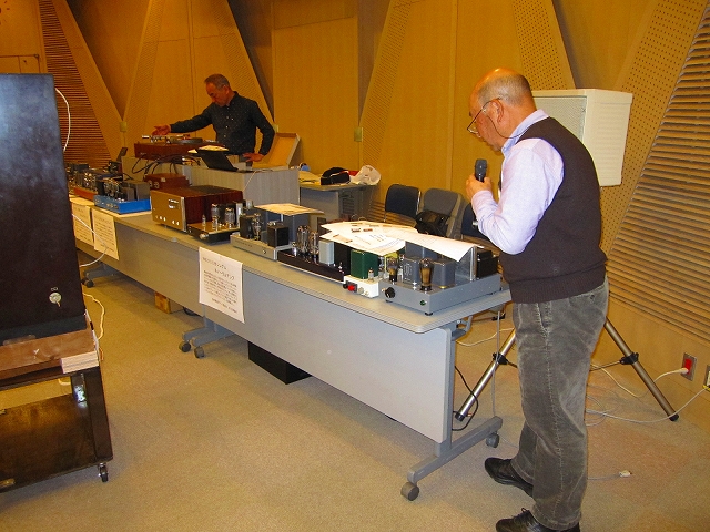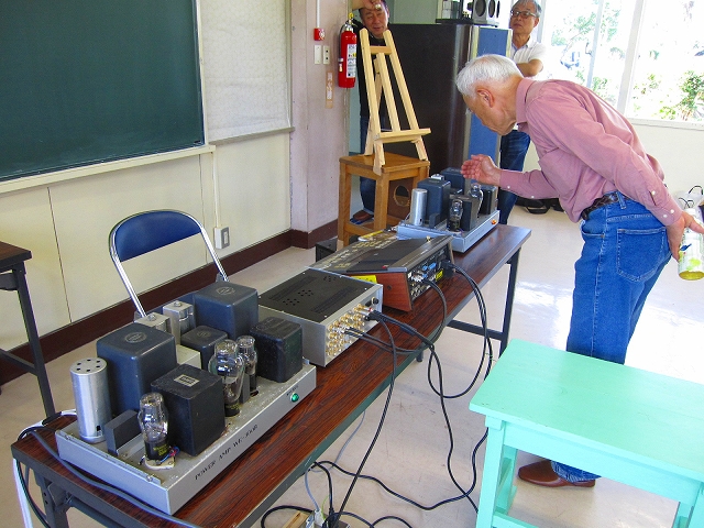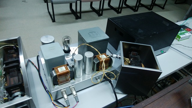 | 休憩時間 近くで真空管アンプを見て頂きました。 |