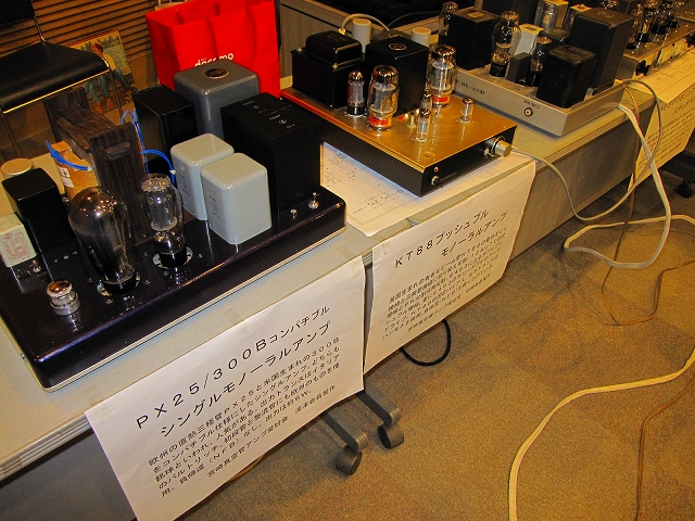 | PX25シングルアンプ(河津会員) KT88プシュプルアンプ(砂崎会員) |