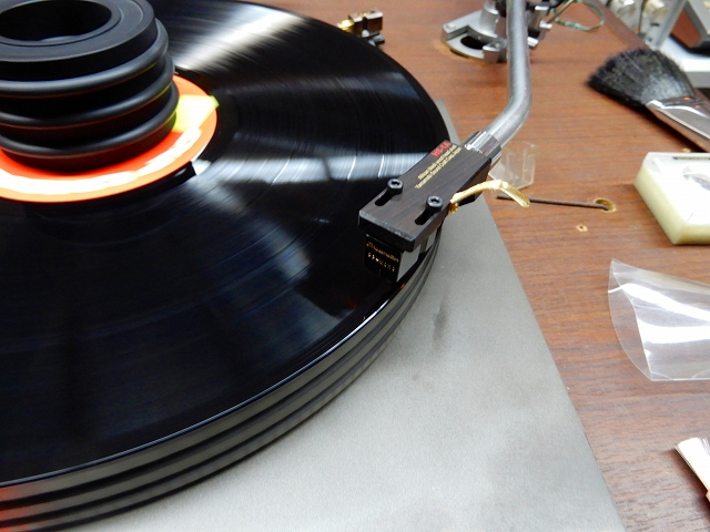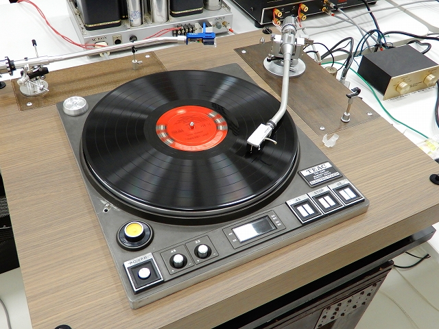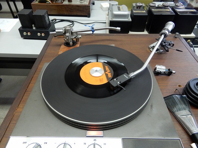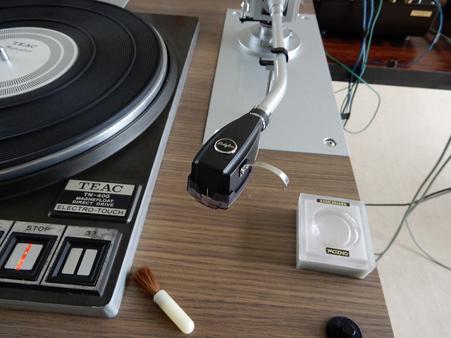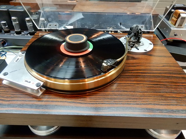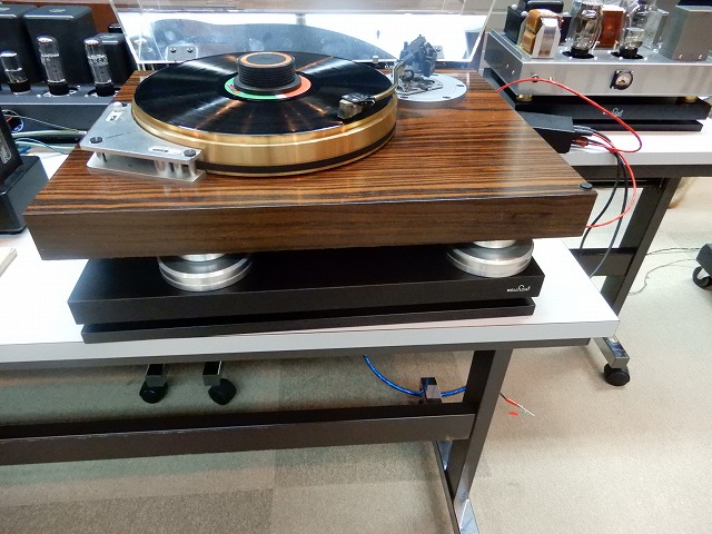 | 重量のある砲金製プラッターをゴムベルトで回します。 ドッシリと落ち着いた静かな音。カートリッジはオルトフォンMC20 下に敷いたウエルフロートが効いてます。 |