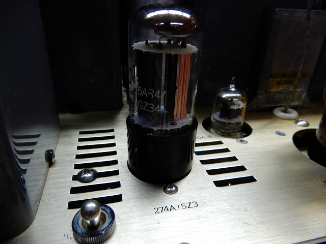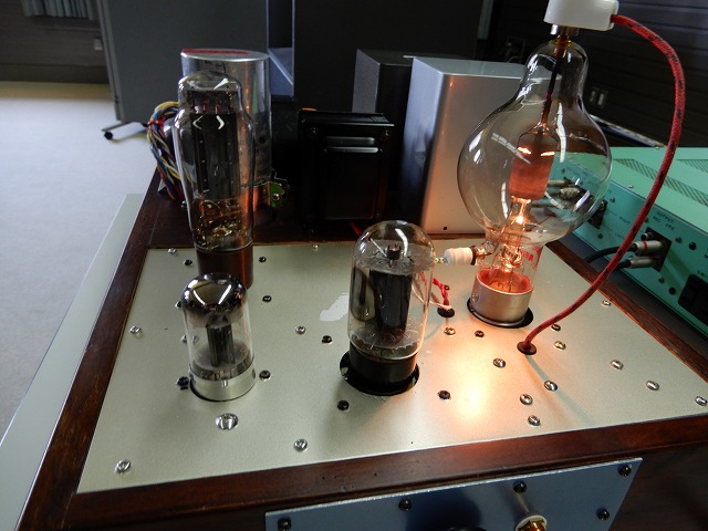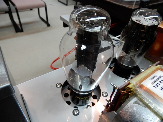 | コンサートで使用したWE300Bシングルアンプ 300Bのクローズアップ |