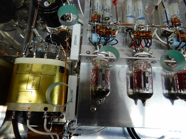 | 右側のコンデンサはWE製 出力トランスはルンダールLL1664 |