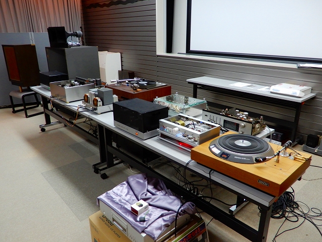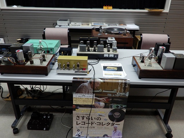 晴天に恵まれた2018年11月23日(勤労感謝の日)、宮崎市立図書館レコードコンサート『イージー・リスニング・ジャズ』特集を実施しました。坂東会員の新作WE300Bシングルモノーラルパワーアンプ、加藤会員製作の45シングルステレオパワーアンプ、砂崎会員製作のの6CA7シングルステレオパワーアンプおよび砂崎会員のマランツタイプイコライザー採用のプリアンプ、それに、LUX社CL-35プリアンプ改造品とパワーアンプが3セット、プリアンプが2セット。水野会員のアルテックライントランスMODEL15335A、河津会員のUTC-LS-12を使ったMCトランス、山本和広会員のBL-91アナログプレーヤーとたくさんの機器が集まりました。