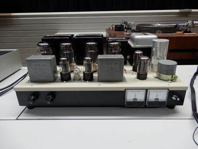 | これも木下会員の遺品VT-52プッシュプルアンプ 300Bよりも音が良いと言われるVT-52のプシュプルアンプです。事前の試聴で使用しました。 |