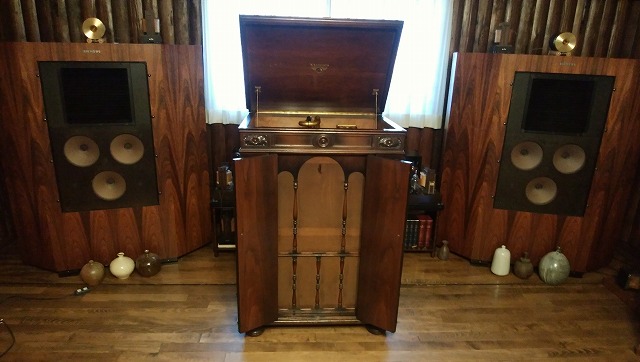 | ビクトローラ・クレデンザ(中央)と両脇のスピーカーはSIEMENSオイロダイン |
