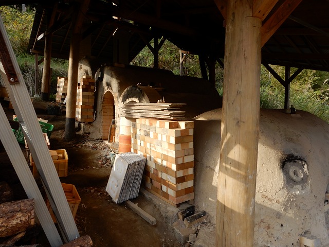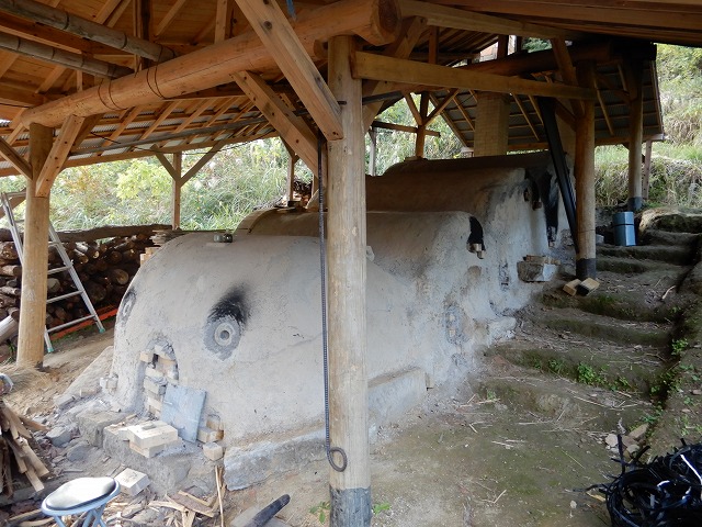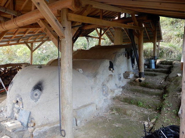 | 登り窯はもちろん、窯の上の建物まで全部山本さんの手作りだそうです。 |