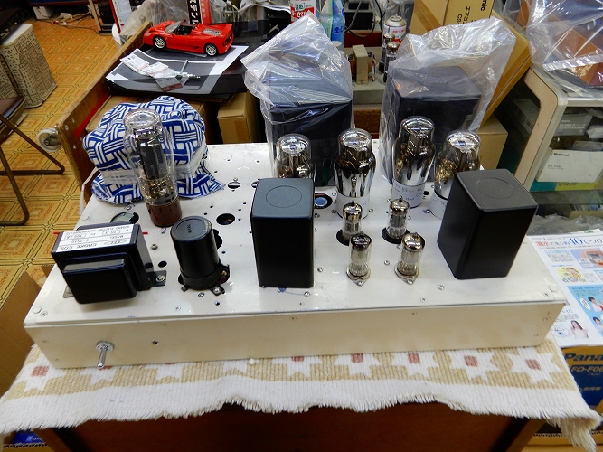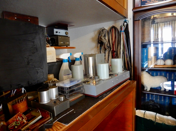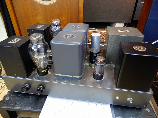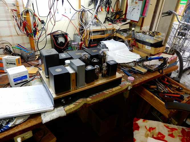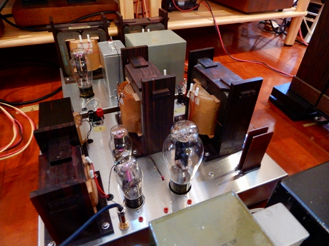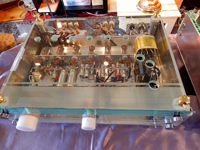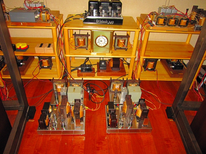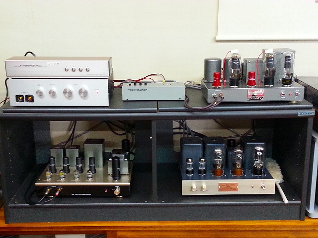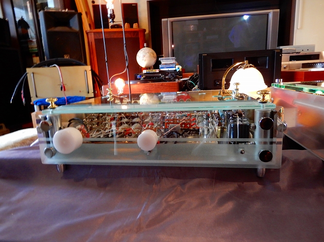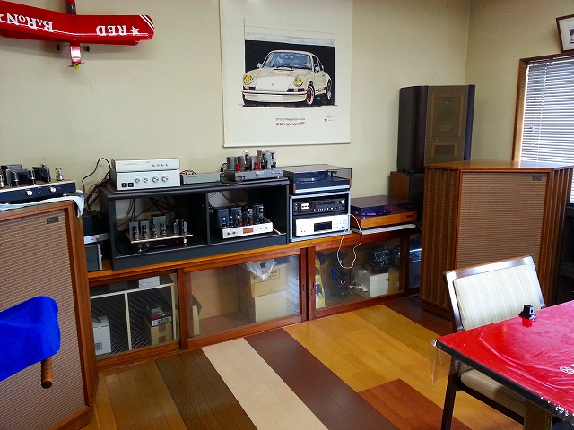 | I様はラジコン飛行機や、自転車など多趣味の方です。「オーディオはまだ、始めたばかり」とのことですが精力的に次々にアンプを作られています。自作のプリアンプも、文字入れまでご自身でされており、見事な仕上がりです。アンプを切り替えて試聴させていただきましたが、特にWE350Aシングルアンプの音が印象的でした。 |