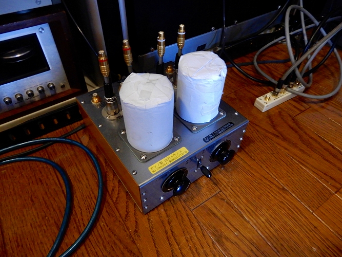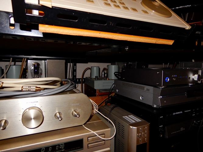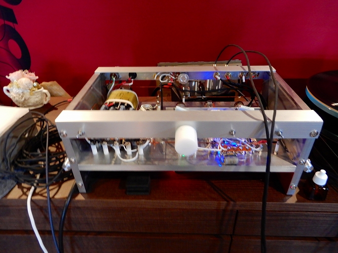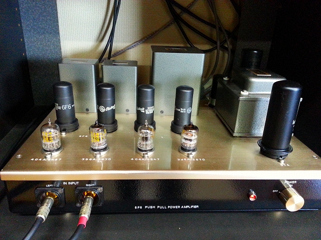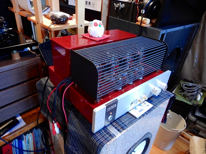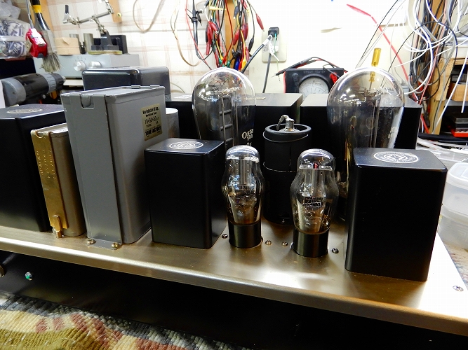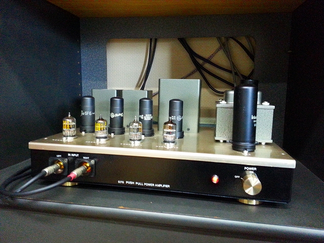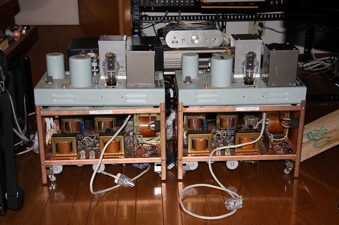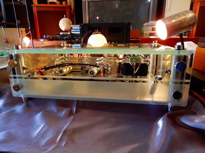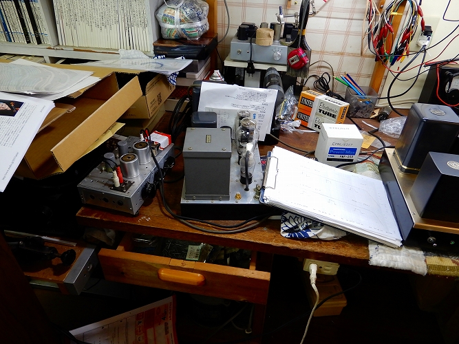 | I様はラジコン飛行機や、自転車など多趣味の方です。「オーディオはまだ、始めたばかり」とのことですが精力的に次々にアンプを作られています。自作のプリアンプも、文字入れまでご自身でされており、見事な仕上がりです。アンプを切り替えて試聴させていただきましたが、特にWE350Aシングルアンプの音が印象的でした。 |