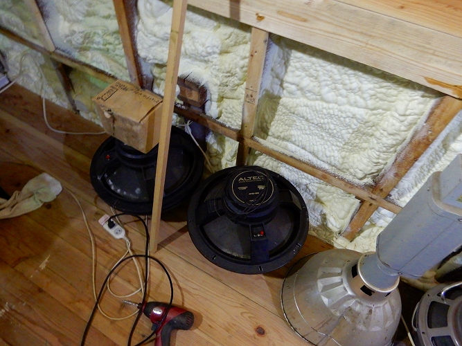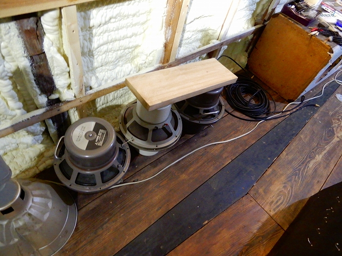 | 休止中のオンケン箱に入ったJBL D130と075 50年代のJAZZを聴くにはこれが最高。 |
