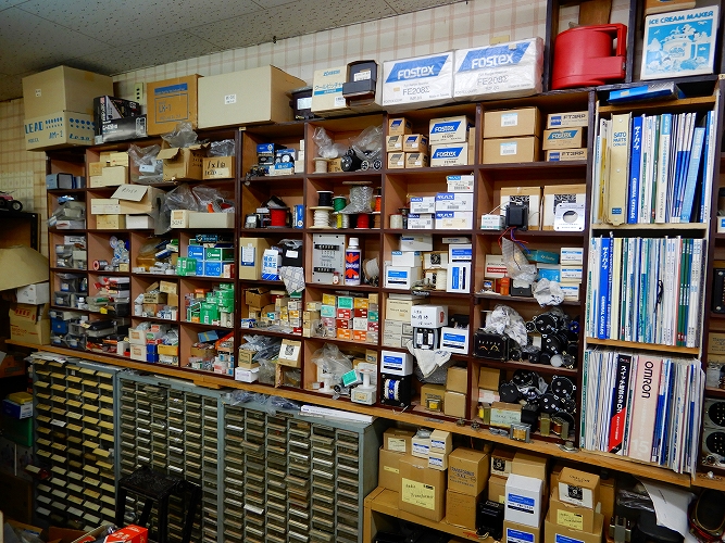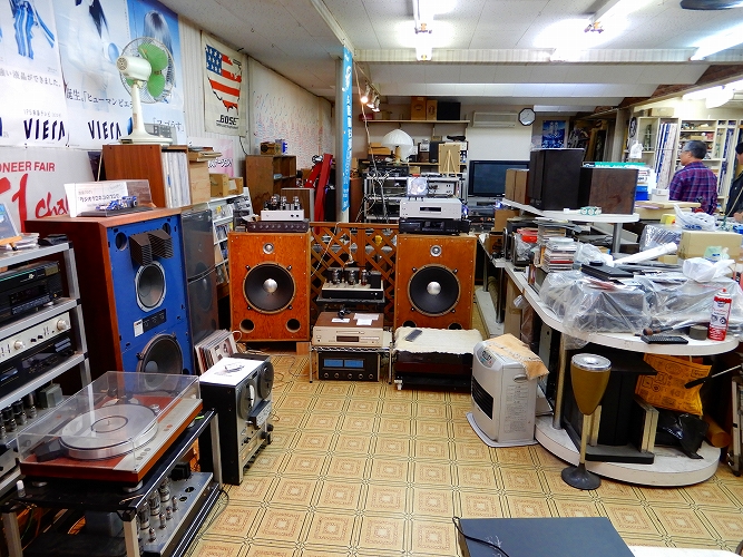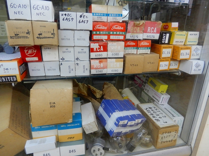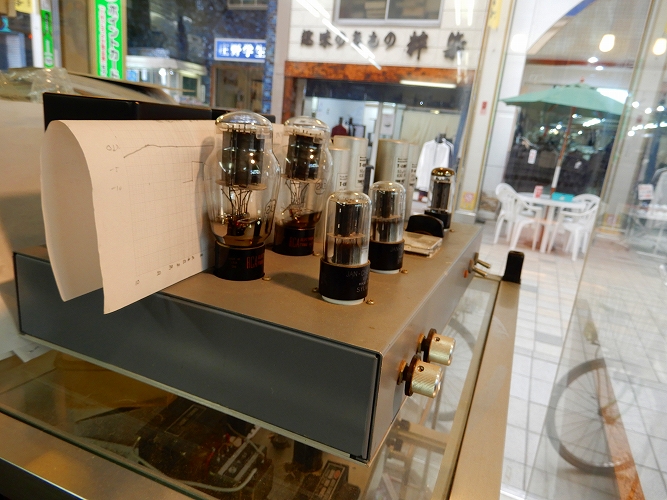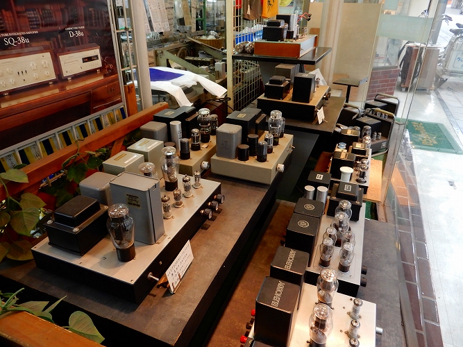| ショーウインドーには真空管アンプがずらりと並んでいて壮観です |