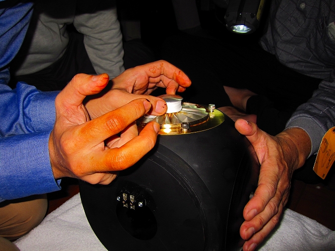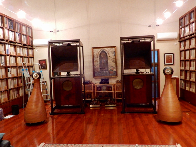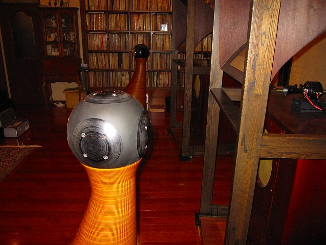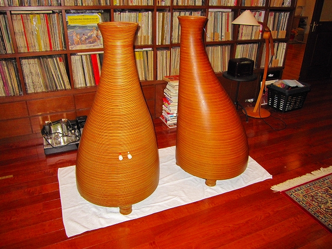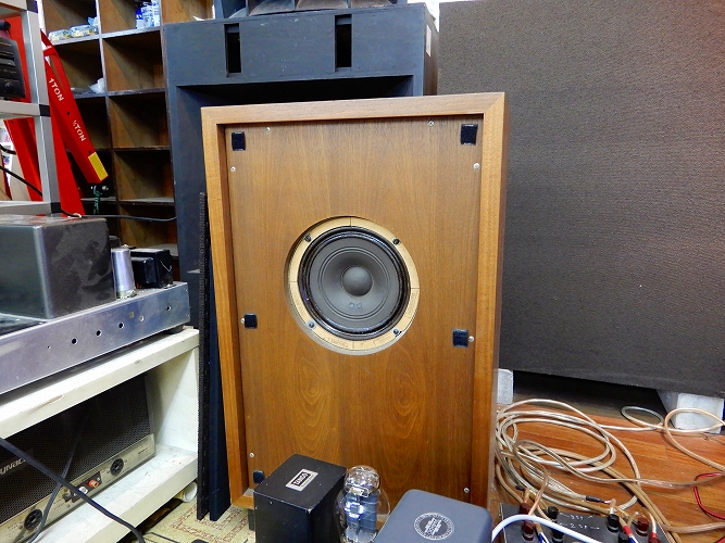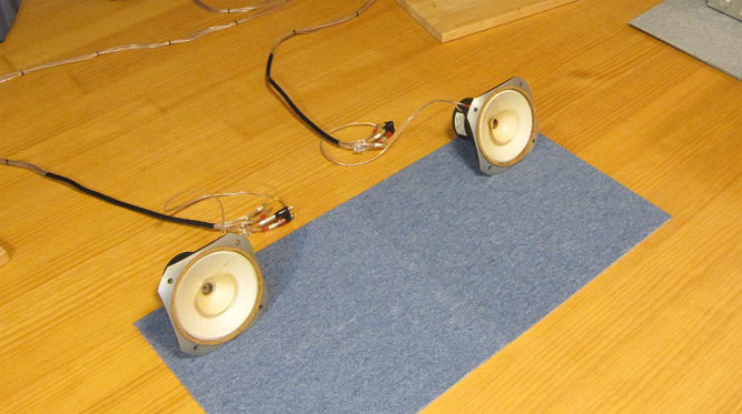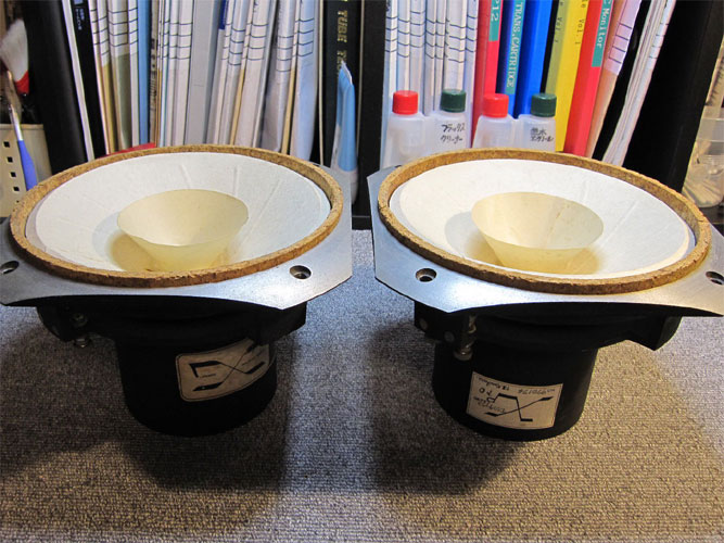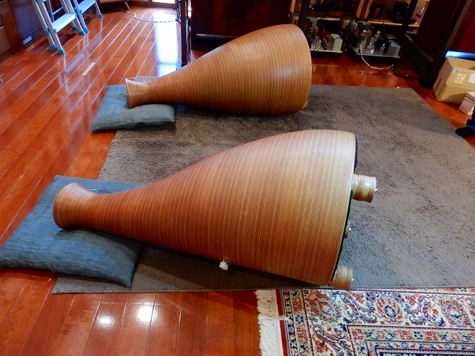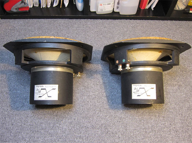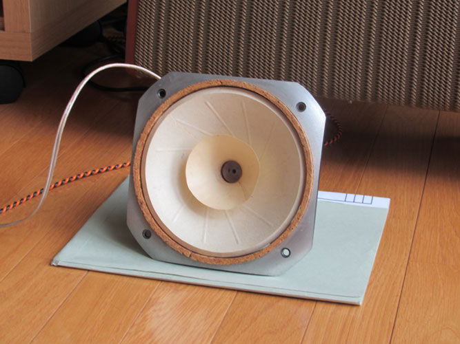 今回は写真のようにユニットを裸のまま試聴しました。バッフルが無いので低音は当然出ませんが、大変艶のある音で能率も多分100dBを超えていると思われ最近、巷で流行っている鈍重なスピーカーとは真反対の音離れの良い音です。最高の音で鳴らすにはバッフル・エンクロージャーを始め、クリティカルな調整が必要になりますが、力の入れがいのあるユニットだと感じました。バッフルにマウントした状態での試聴をしたいと思った次第です。