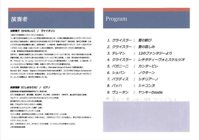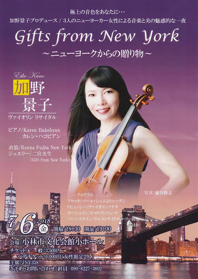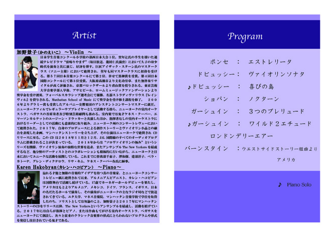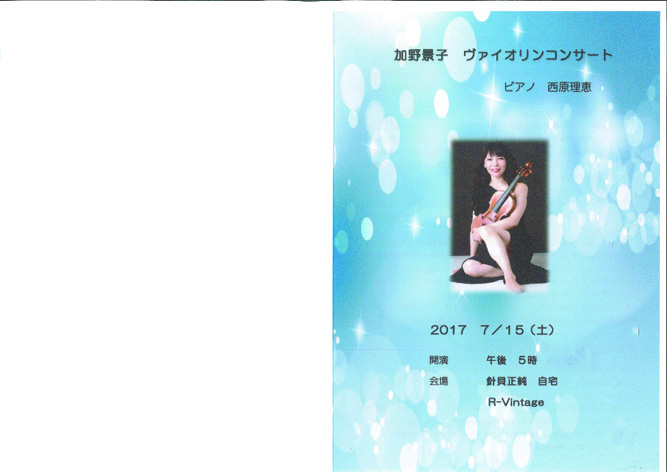 | 2018年7月5日 加野景子 ヴァイオリンコンサート |