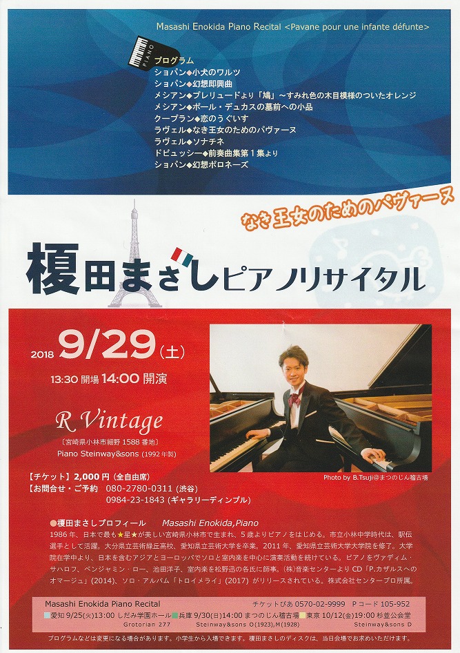 | 2018年9月29日 榎田まさしピアノコンサート |