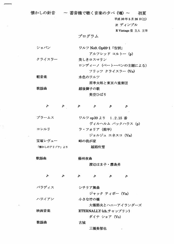 ホームコンサート他、デジタル生録音の記録 2016.07.30〜2018.09.29 山本会員