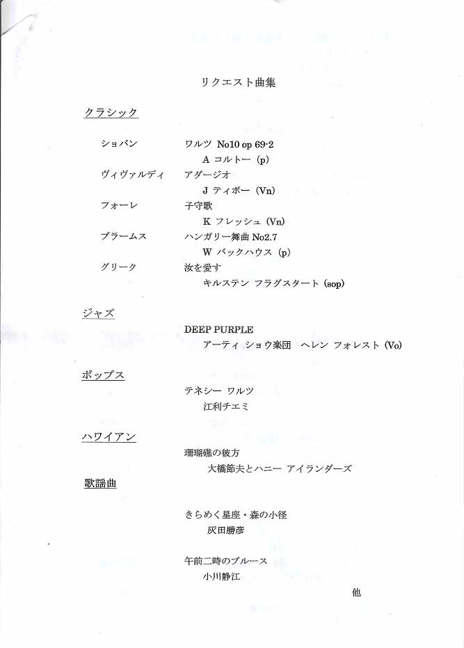 加野景子カレンコンサート後、約3か月して同H氏邸で榎田まさしピアノソロホームコンサートが開かれる情報を聞きつけましたがさすがにこれは録音許可は出ないと予測していたもののオーナーを通して問い合わせしました。やはり無理との返答でした。
