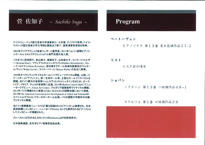| 2017年11月19日 菅佐知子ピアノソロコンサート |
