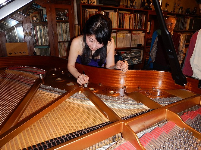 今回バイオリンとピアノのデュオコンサートですが途中ピアノソロもあります。そこでの録音検証ポイントは伴奏時のピアノの蓋は控え気味の約20度位の開放ですがピアノソロ時は45度位の開放度合になりピアノの響きが録音にどの位差がでるのか違いを聞き比べることにあります。