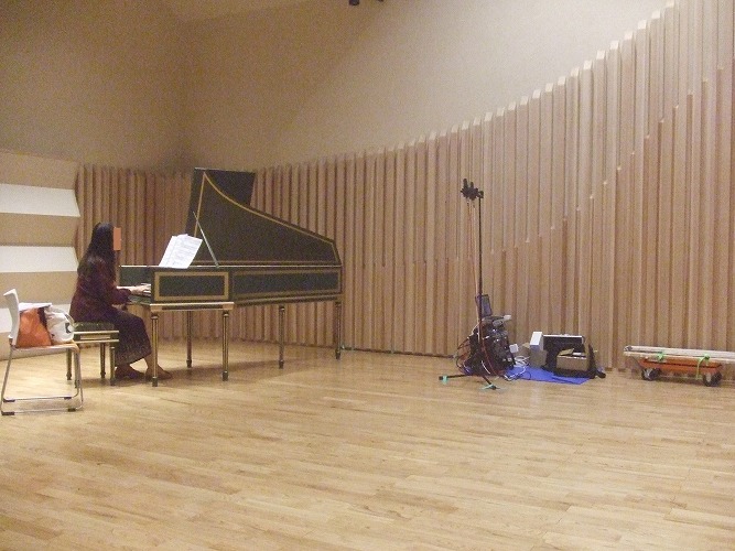マイク位置はもう少しチェンバロに近づけてオンマイクで録音したい