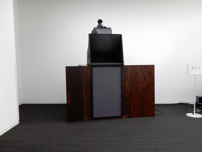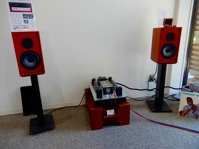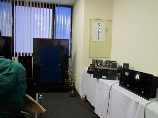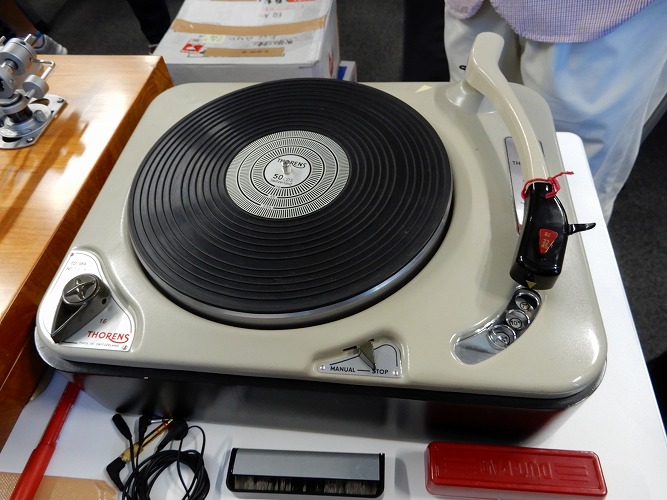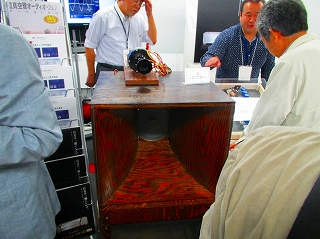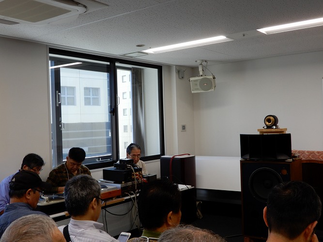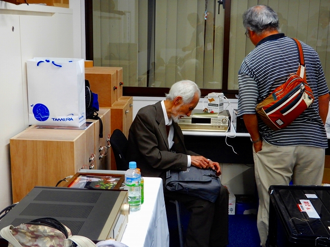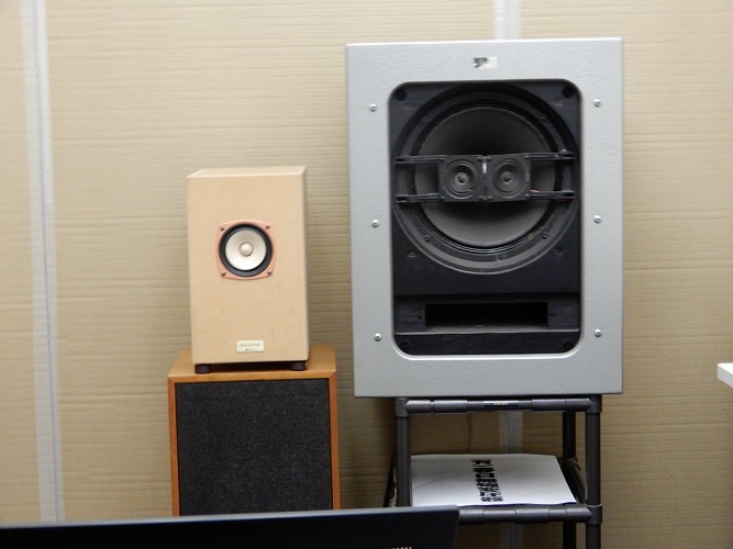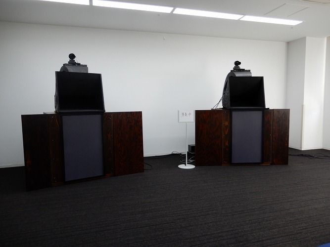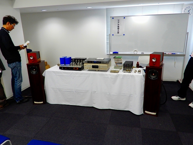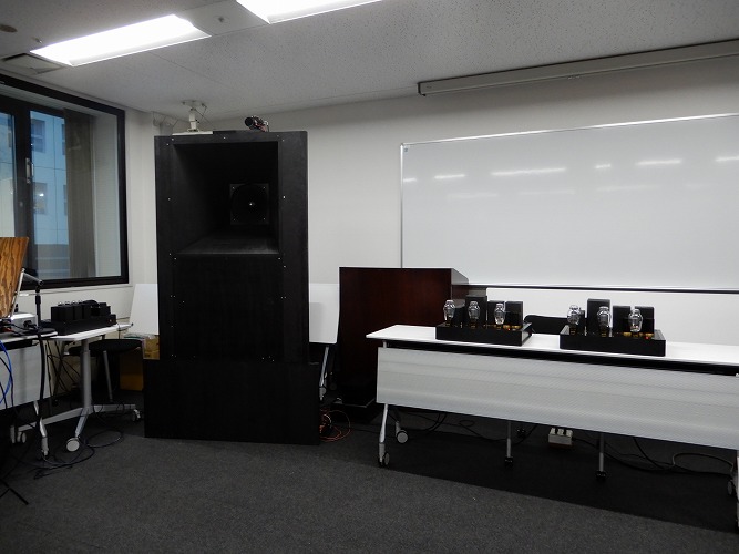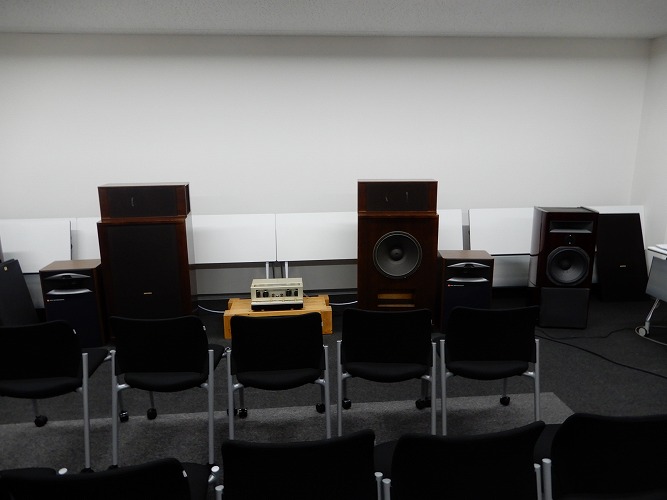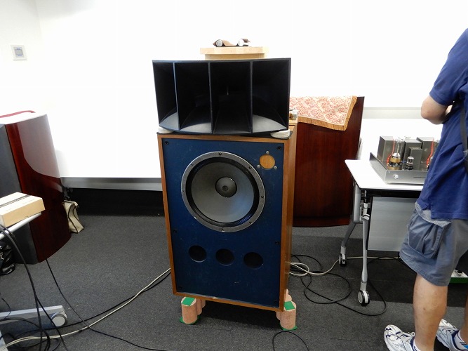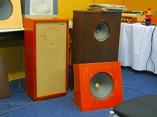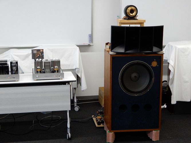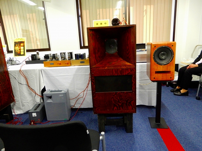 D50録音機でデジタル録音し、再生時にイコライザーを通してPX25ppアンプでバックロードホーン入りのローサーPM6Aを鳴らすモノラルシステムです。 他のブースからこの部屋に来るとホッとする感じの音がしていました。 |