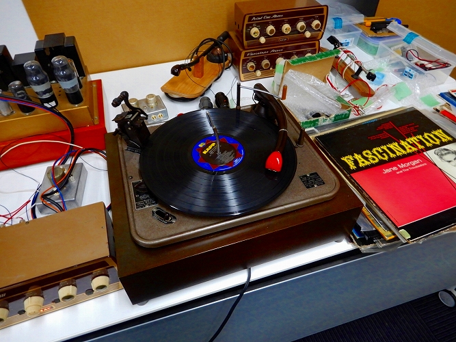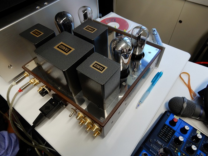 | 簡単なミキサーでCD-Rに焼いた伴奏と瀬戸カオリさんkの生声をMIXしてRCA845アンプで再生。 |