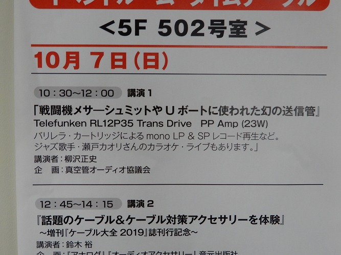 台風19号が日本列島を縦断した10月12日〜13日、秋葉原・損保会館で開催された真空管オーディオフェアを見てきました。真空管オーディオフェアは真空管オーディオ協議会の主催で行われ、今年で丁度20年になります。