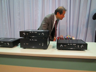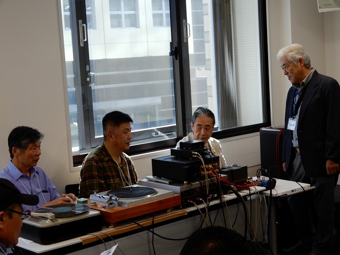 真空管オーディオを趣味とする人の平均年齢も年ごとに上がっていく一方ですが、人気のブースは入場整理券がアッという間に無くなるなど、なかなかの盛況ぶりでした。12日・13日と2日間、全ブースを見学・試聴しましたが個人的に好みの音だったのは佐久間先生が解説されたチューブオーディオラボのブースおよび、平板スピーカーを使ったファルのブースでした。チューブオーディオラボでは、LPカートリッジの出力をそのままSONYのPCM