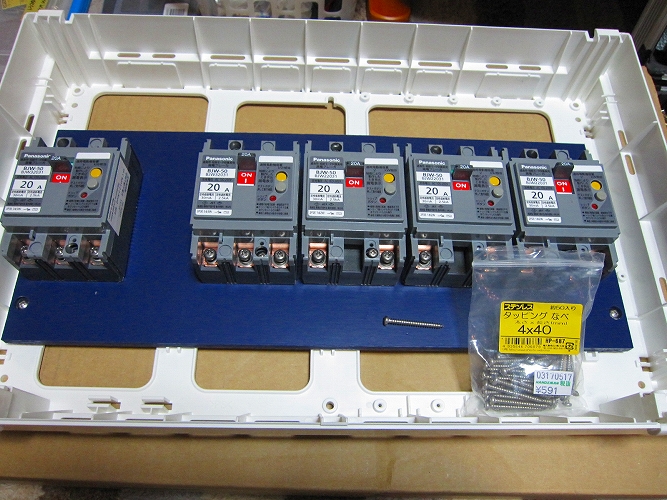 | 今回、オーディオ用電源と生活用電源を完全に分離したのでこの分電盤は生活電源専用になります。しかし、この分電盤での雑音やひずみの発生を抑える為に、@配線はよくひねる(ツイスト)。これは真空管アンプを作る際、ヒーター配線などの交流回路は良くひねって配線しますが、同様の効果があると思われます。Aブレーカーのネジも全てチタンネジに変えます |