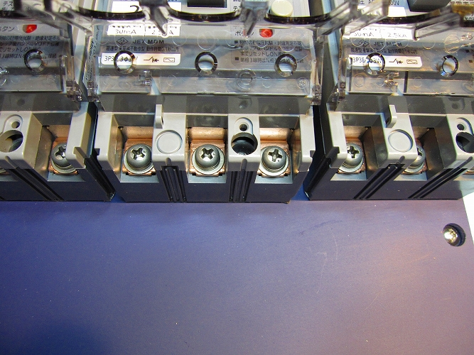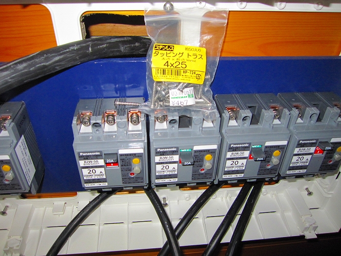 分岐ブレーカー20Aの接続ネジもすべてチタン製。