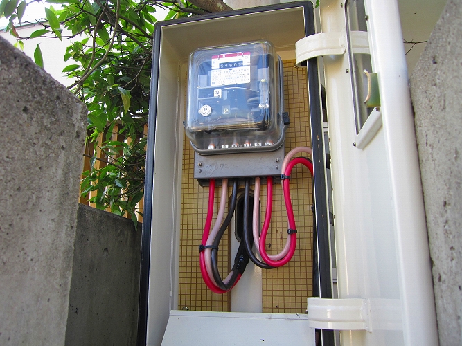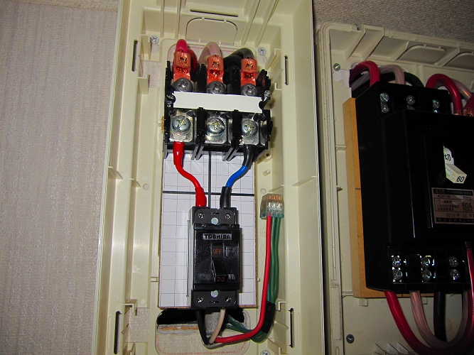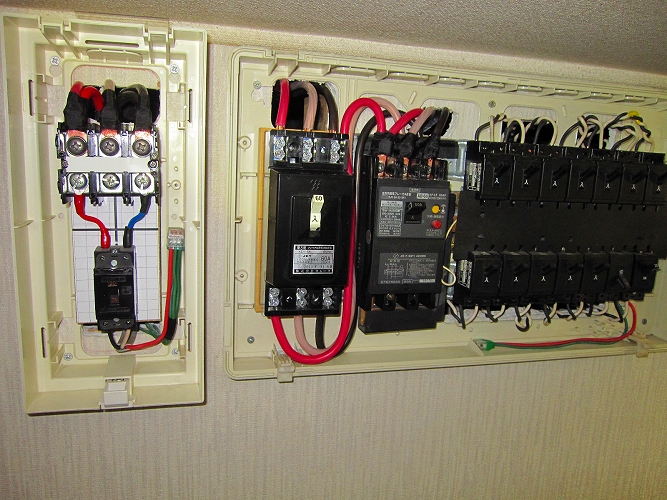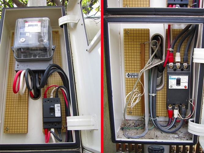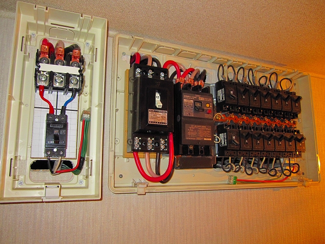 | 改修前の電力量計と電流制限用(契約)ブレーカ |