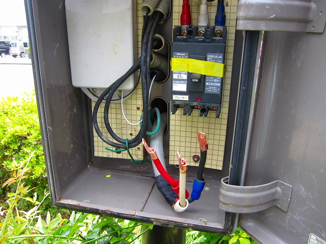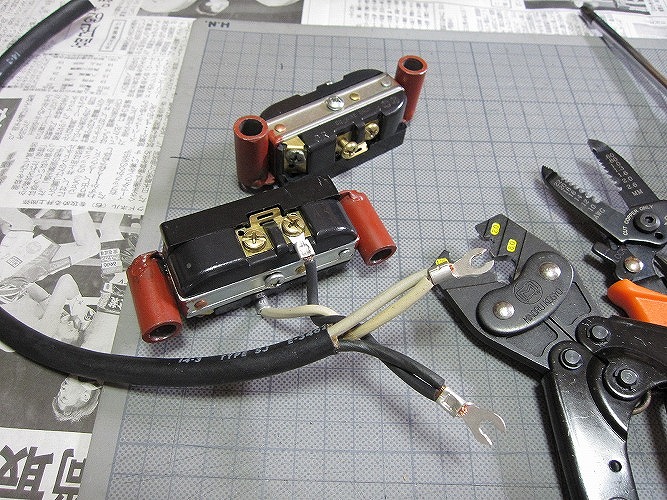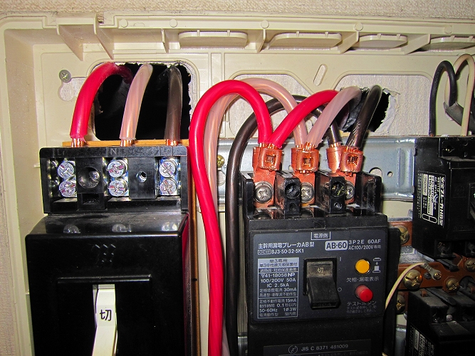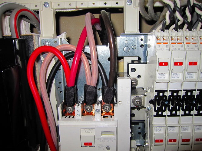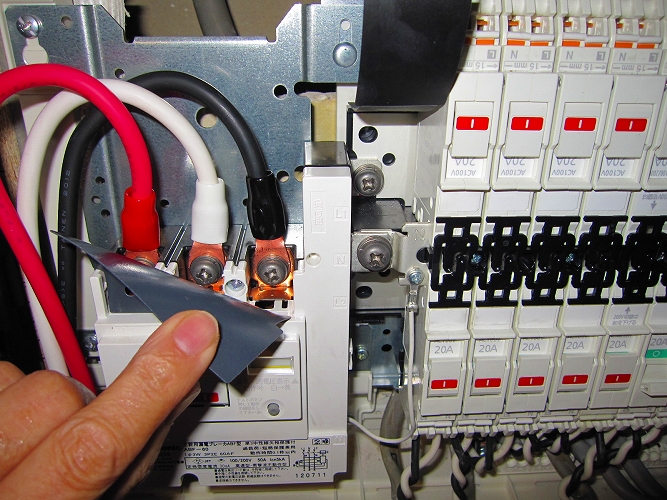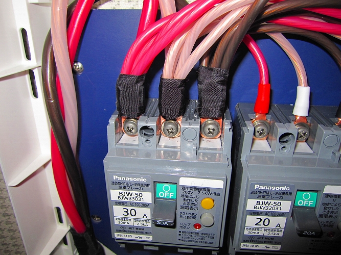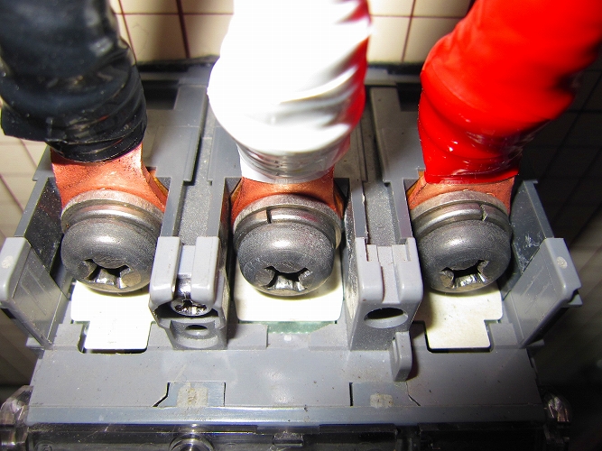 ブレーカー部圧着端子、アース線接続部端子(Pスリーブ)も同様に処理をしてあります。
