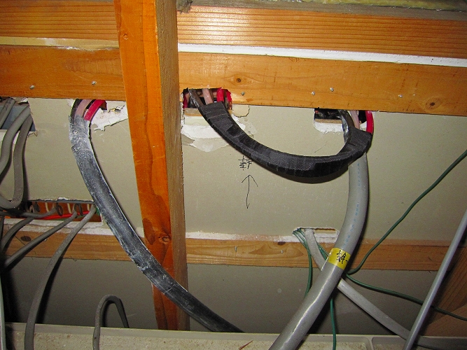 | @既設は2系統専用回路をひいているので、このケーブルを流用する。 |