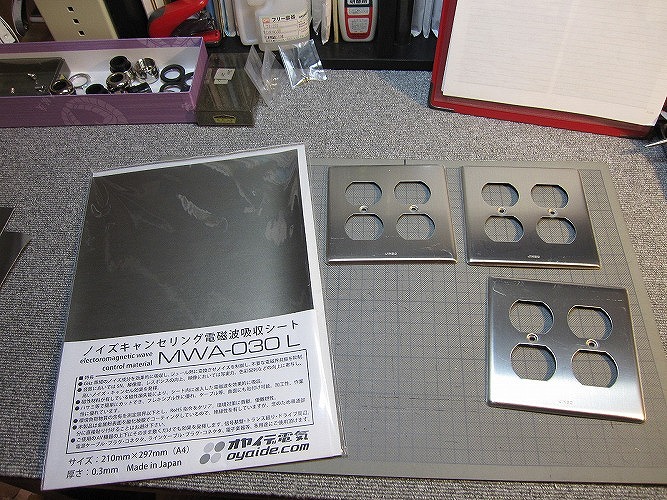 電磁派吸収シートとコンセントプレート、材質はステンレス(非磁性体)